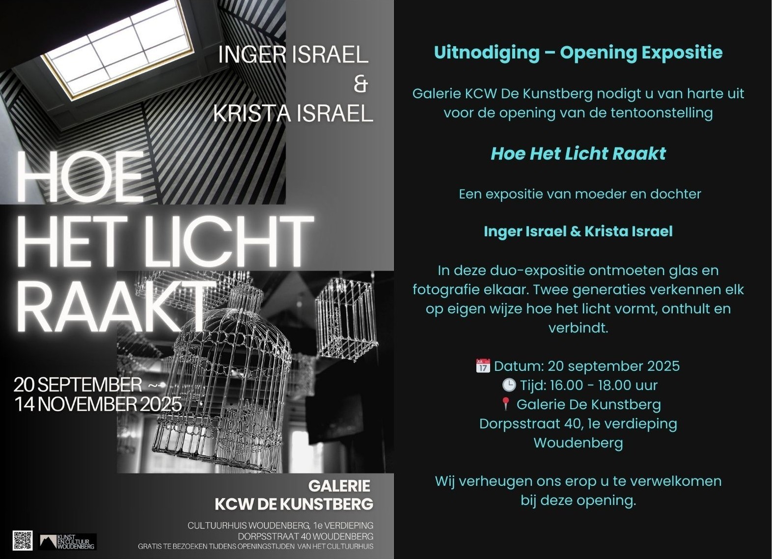 De tentoonstelling is te zien van 20 september tot en met 14 november in Galerie De Kunstberg, Cultuurhuis (1e verdieping), Dorpsstaat 40, Woudenberg. De expositie wordt geopend door burgemeester Magda Janssen op 20 september om 16.00 uur, waarbij iedereen van harte welkom is.