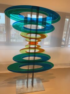 Glas gebruiken wij in ons dagelijks leven zo veelvuldig, dat het bijna een vanzelfsprekendheid is dat het bestaat. Wij drinken eruit, bouwen ermee, kijken erdoor naar buiten en zitten ervoor als wij onze pc en smartphone gebruiken. Maar glas is ook een dankbaar product voor kunstenaars. Wie kent, bijvoorbeeld, niet de glas-in-lood ramen in oude kerken? De komende zeven weken is op de eerste etage van het Cultuurhuis de expositie ‘Door het glas’ te zien. Op uitnodiging van Galerie ‘De Kunstberg’ exposeert een vijftal kunstenaars de komende weken enkele resultaten van hun creativiteit.