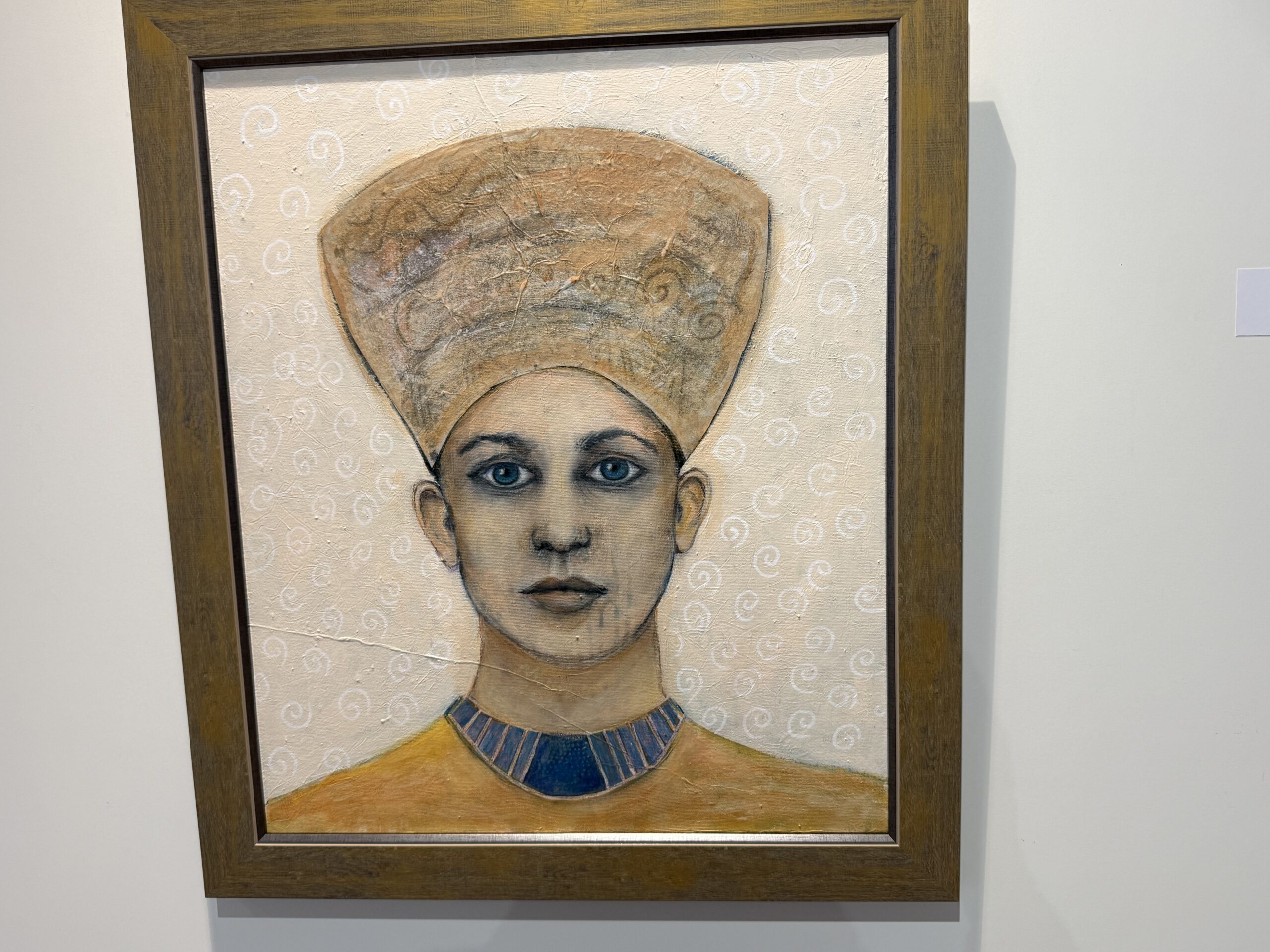 Het portret ‘Androgyn’ van Ellen van Beeck behoort tot een serie van zeven. .,,Ik doe een onderzoek naar de verdieping in een portret. Het thema is ‘culturen’. Leuk is om jullie te vragen ‘Wie vindt dit portret een man en wie vindt het een vrouw?’ Dat beide geslachten werden genoemd verrast Van Beeck niet. ,,Zelf zag ik er gaandeweg een vrouw in, maar ik kan mij goed voorstellen dat er een man in wordt gezien. Daarom heb ik Androgyn (tweeslachtig – redactie) genoemd.”